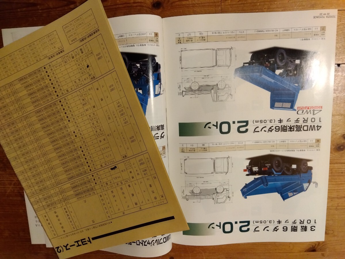 - 車5 平成レトロなトヨタトヨエースダンプ総合カタログ、平成7年(1995年)版、当時価格199万円〜、2トン/3.5トン、G25/G35、#朝来佐嚢#