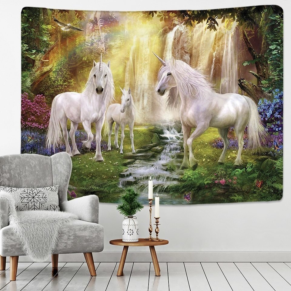 - PYD613★美ニコーしい ユン 親子 ターペストリ 幻想的 200×150cm ▲ テリアイン 壁掛け 3D プリント ユニコーン 装飾 リビング