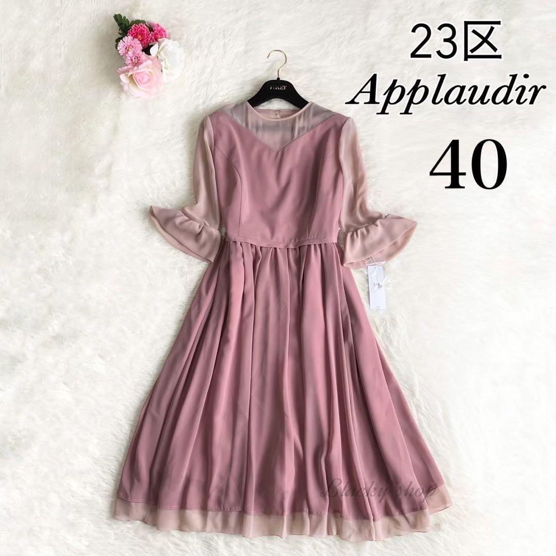 > 23区 APPLAUDIR マット オーガン ドレス ワンピース 未使用 タグ付き ローズ ピンク 40 シアー シフォン パーティー 2次会 大きいサイズ