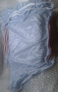 - ノーブランド製品、メンズ、ビキニ、ボディースーツ、薄水色フエイクシルク、両脇赤白黒5本線入り,ナイロン58,3%,フリー(L~XL)サイズ,