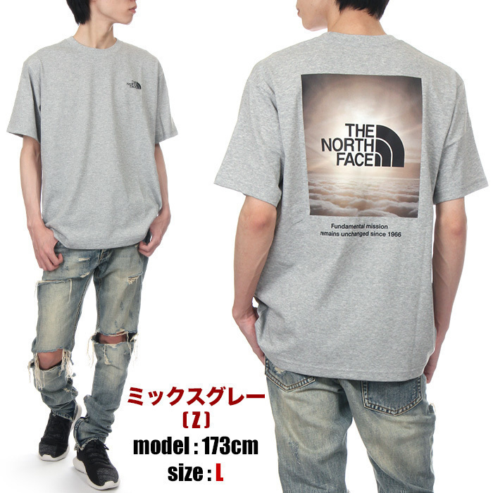 > 【Lサイズ:ミックスグレー】【新品】ノースフェイス Tシャツ THE NORTH FACE 半袖Tシャツ バックプリント ロゴ 速乾 ブランド NT32459