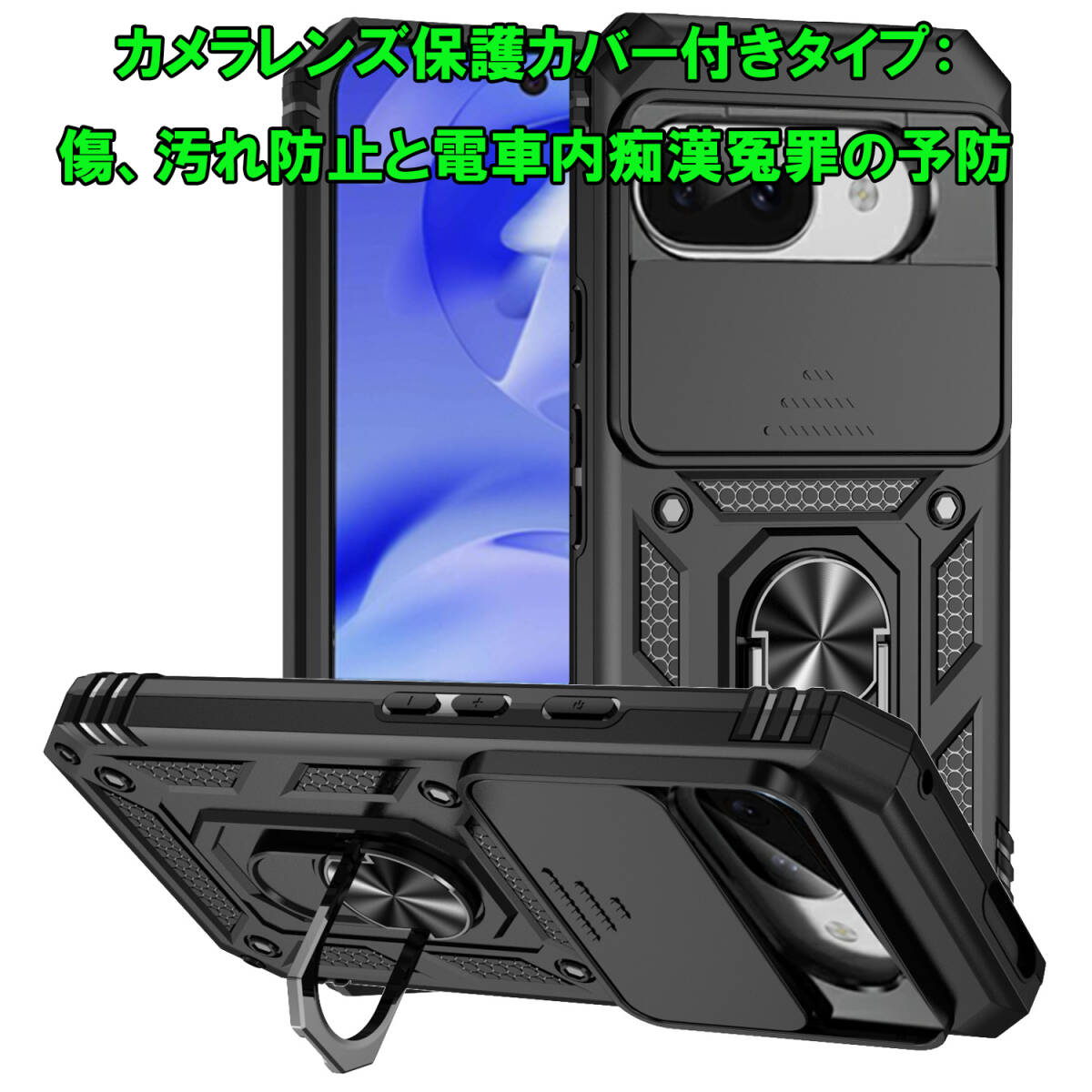 - G 黒 Google Pixel 9a ケース 本体 カバー 指リング 画面 保護 守る グーグル ピクセル 米軍 衝撃 頑丈 スタンド ホルダー 最強