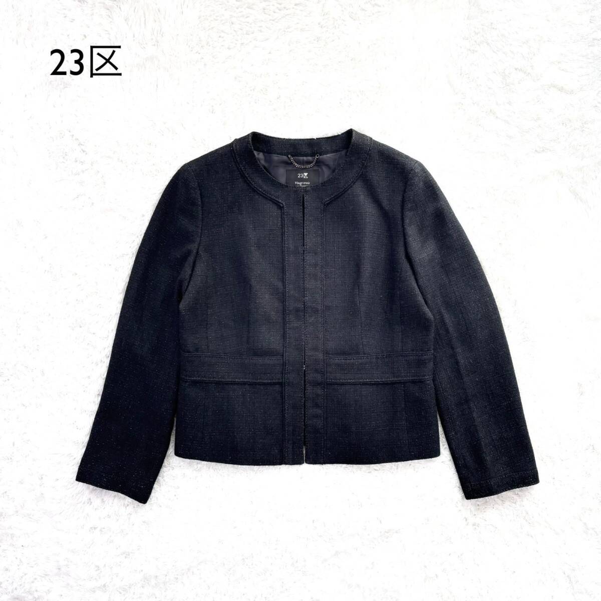 - ki95 23区 ツイードノーカラージャケット セレモニー フォーマル ジャケット カラーレス ラメ キラキラ ニジュウサンク