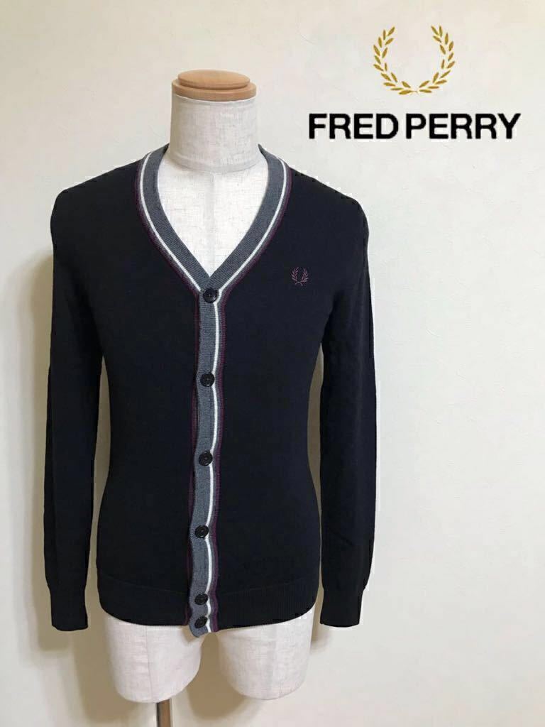 - 【美品】 FRED PERRY フレッドペリー ニット ウール カーディガン トップス ブラック サイズXS 長袖 黒 上着 ヒットユニオン SK3001