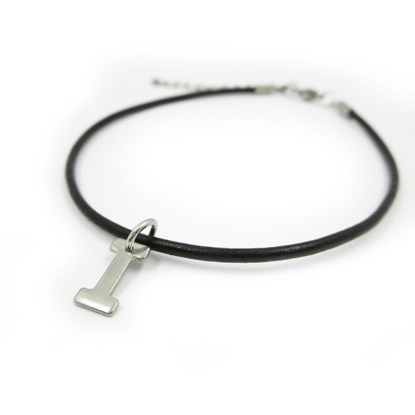 - I レザーアンクレット イニシャルチャーム付き ステンレス金具 27cm(23+4cmアジャスター)