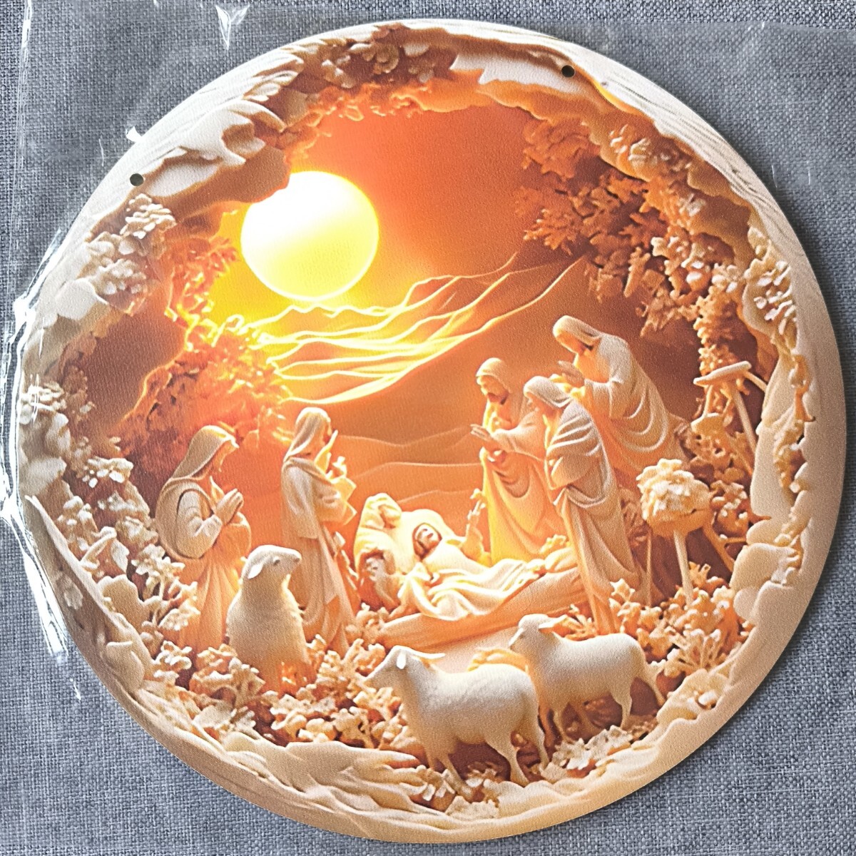 - 【イエス・キリスト 降誕場面】ウッドプレート 飾り 紐付き オブジェ お洒落 壁や窓辺の飾りに◎