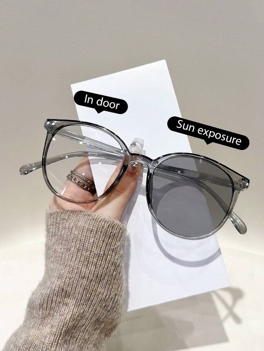 - アクセサリー レディース アイアクセサリー 1個 女性用 エレガントなラウンド プラスチックフレーム フォトクロミック メガネ、ス