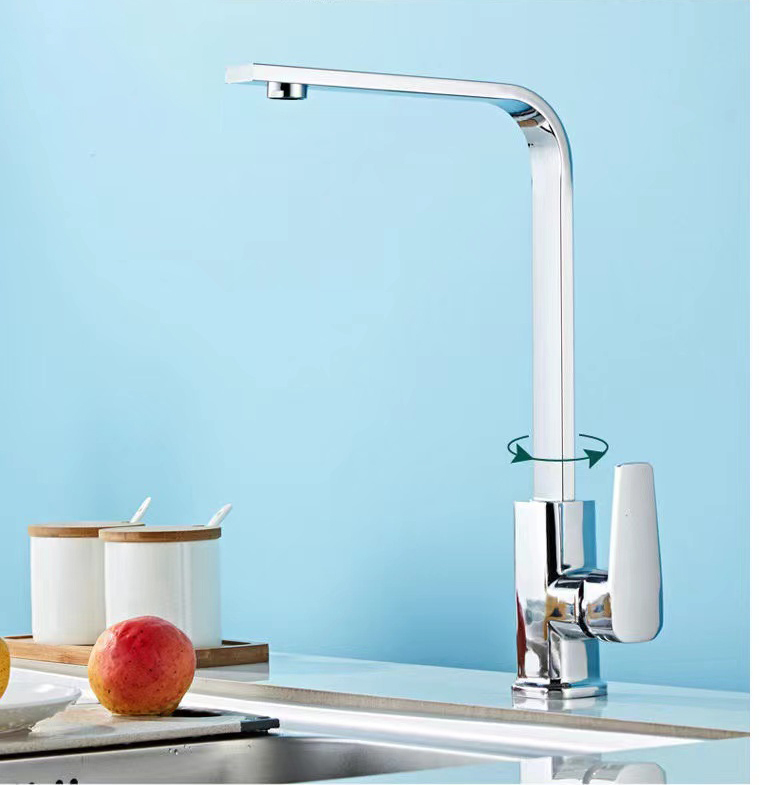 - 蛇口 混合水栓 360°回転 冷熱水対応 60cmホース付 台所蛇口 トイレ 手洗い 立水栓 手洗いボウル 洗面台 シルバー