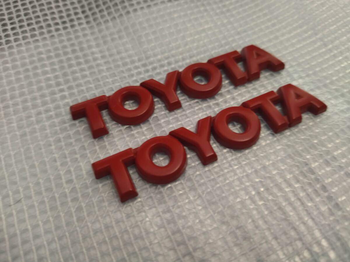 - 【ゆうパケット送料込】TOYOTA エンブレム 2枚組 レッド 横7cm縦1.5cm トヨタ ② ミニサイズ