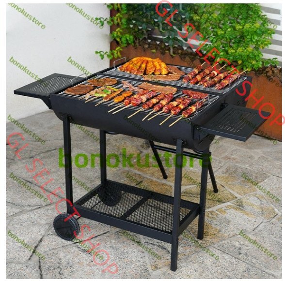 - バーベキューグリル バーベキューコンロ 炭bbqグリル アメリカンオーブングリル 大型 ステンレスグリル コンロセット 調味料棚板付き