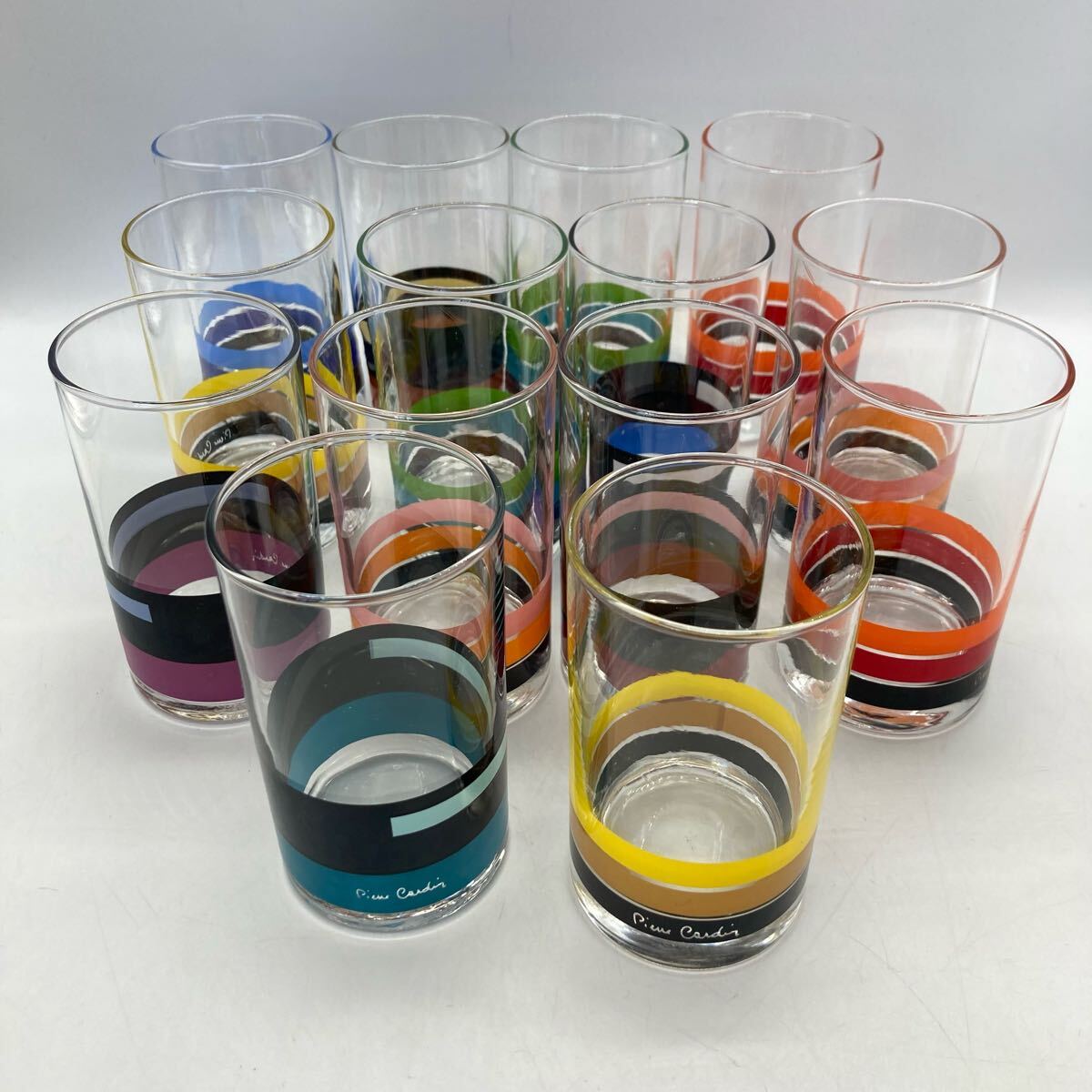 > M1010707N ピエールカルダン グラス 14個セット 昭和レトロ Pierre Cardin 佐々木硝子 レトログラス コップ カラフル 当時物 中古品 現状品