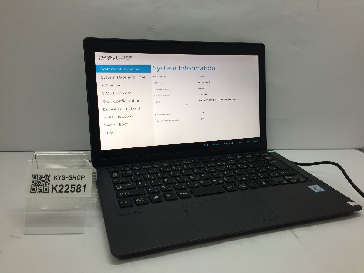 - ジャンク/ VAIO VJS111 Intel Core i3-6100U メモリ4.1GB ストレージ無し 【K22581】