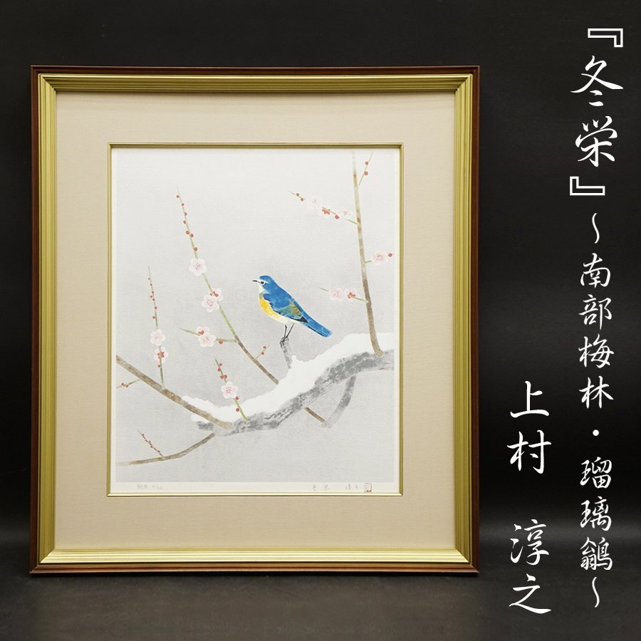 - 上村淳之『冬栄』~南部梅林・瑠璃鶲~ 9/25 リトグラフ 版画 額装 アート 美術品 絵画 希少作品 肉筆サイン有 直筆サイン 真作保証品