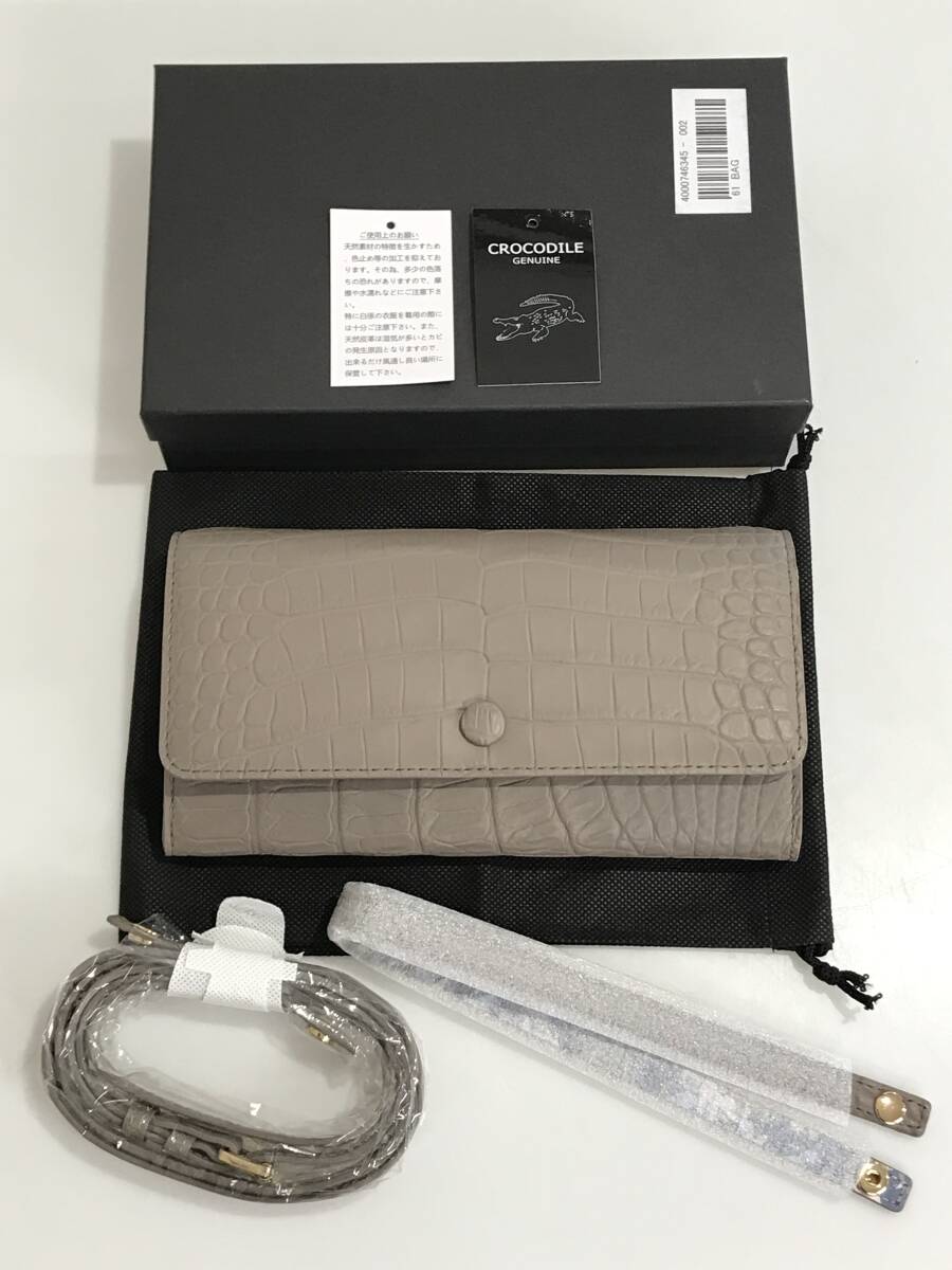 - HG8837 クロコダイル お財布ショルダー ハンドバッグにも 小銭入れ カード入れ ワニ革 レザー エトゥープ系 専用袋・箱付き 未使用品