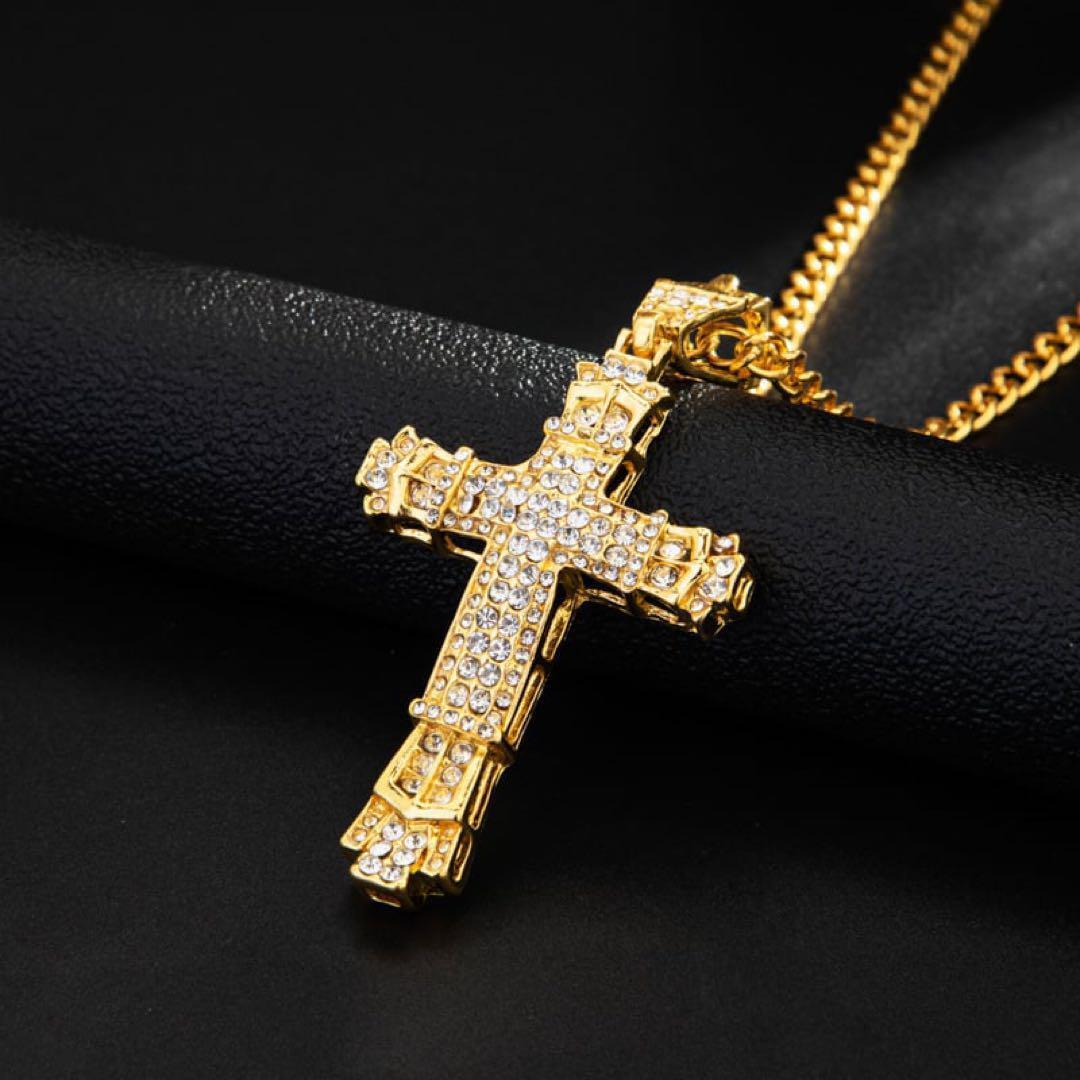 - ジルコニアクロスネックレス ゴールド 十字架 無骨