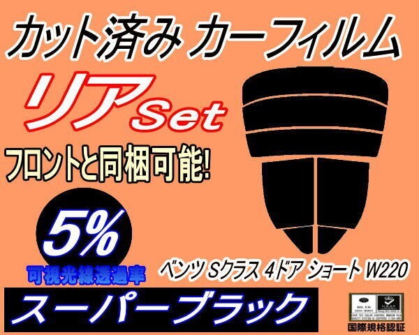- カーフィルム スーパーブラック カット済み リアセット ベンツ Sクラス 4ドア ショート W220 (s) スモーク 220075 220070 220065 220073