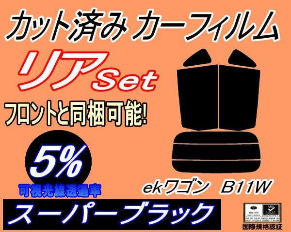 - カーフィルム スーパーブラック カット済み リアセット ekワゴン B11W (s) スモーク B11 ミツビシ ガラスフィルム