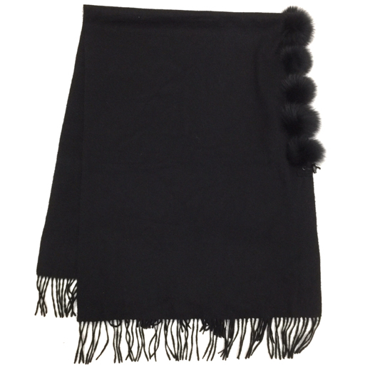 > ランバン カシミヤ マフラー フォックスファー 全長(フリンジ含)約187cm 幅約62.5cm ブラック 黒 LANVIN