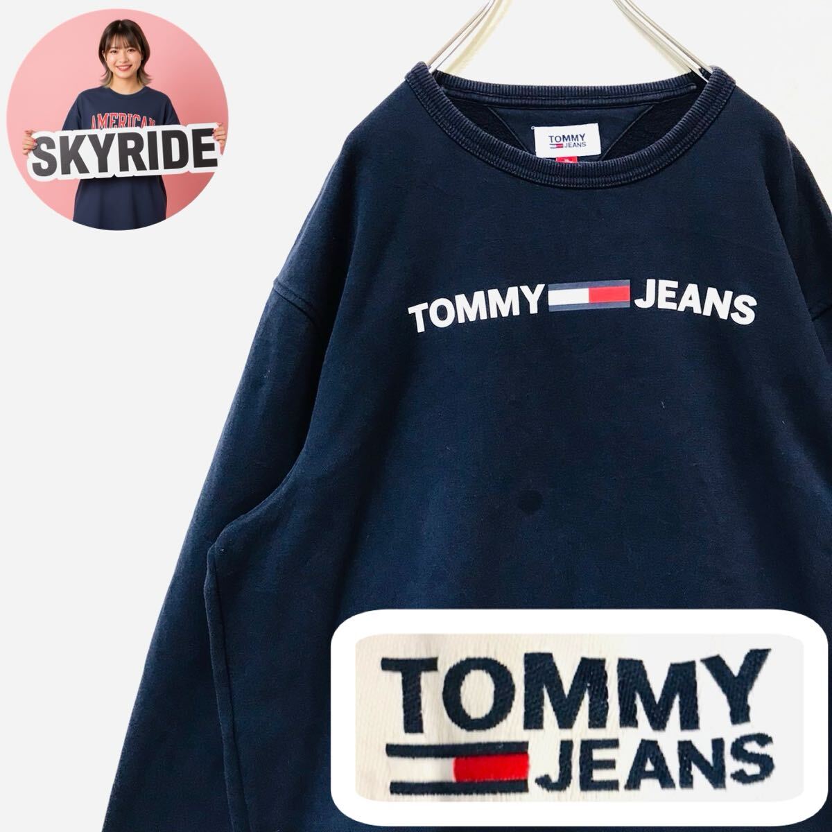 - 90s オールドトミー TOMMY JEANS トミージーンズ ロゴスウェット トレーナー ネイビー XL メンズ ビッグシルエット USA人気 古着 #TT0379