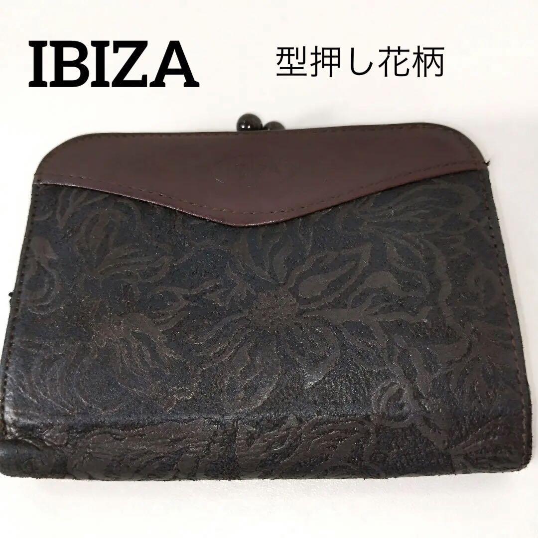 - IBIZA イビサ 二つ折り財布 がま口 ブラック ブラウン 花柄
