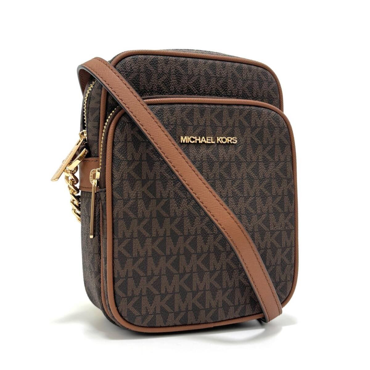 > マイケルコース ショルダーバッグ ポシェット サコッシュ クロスボディバッグ 斜め掛 ブラウン 茶 ゴールド チェーン レザー MICHAEL KORS