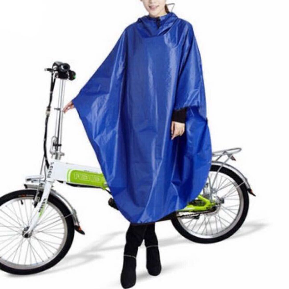- レインコート 通勤 男女兼用 ポンチョ 自転車用 ブルー レインウエア 厚手生地 長いポンチョ レインポンチョ