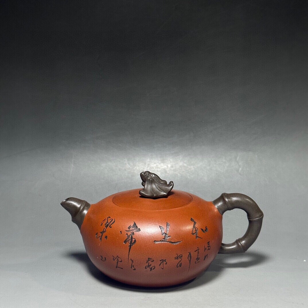 - 【超珍館蔵】紫砂壺 知足常樂壺 顧景舟款 紫砂 茶具 茶道品 置物 賞物 古賞物 古董品 古美術品 時代物 旧家蔵出 稀少珍蔵品