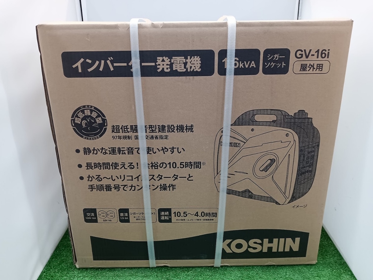 > 未使用品 KOSHIN 工進 インバーター発電機 ガソリン 1.6KVA リコイルスターター 4.2L 22kg GV-16i