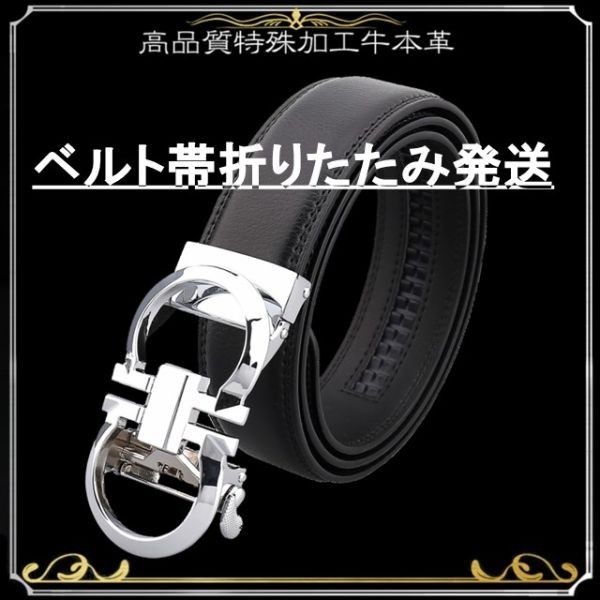 > ベルト 【銀∞】【黒】 折りたたみ発送 穴なし 無段階調整ベルト ゴルフベルト 人気 オートロック メンズ 革 ビジネス ニフティ