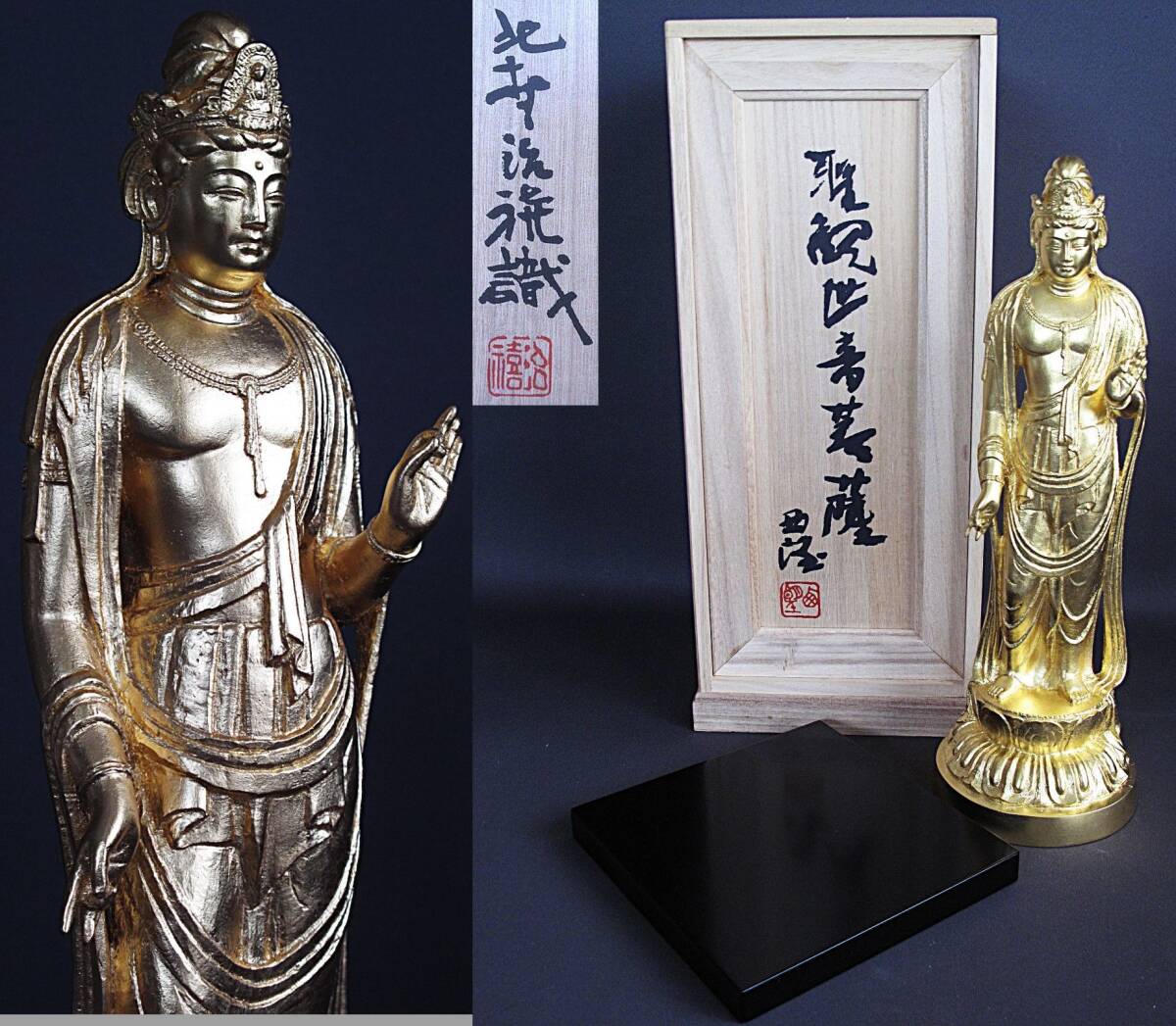 > 北村西望 作『ブロンズ 聖観世音菩薩』北村治禧 識 高36.5㎝ 重2.4㎏/#仏教美術#仏像#ブロンズ像#銅像#観音#仏具#置物#骨董#古美術