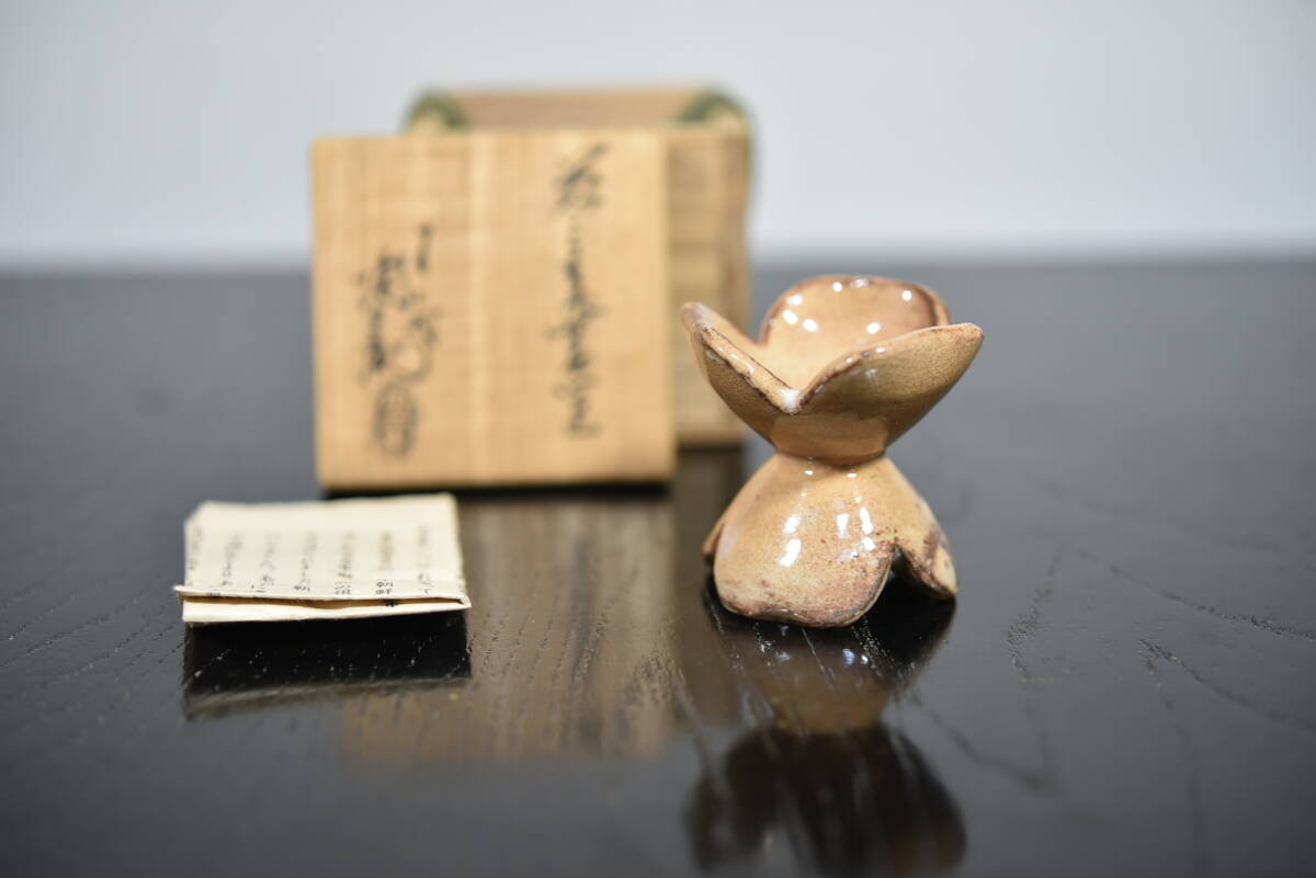 - 萩焼 12代 田原陶兵衛 三つ葉蓋置 茶道具