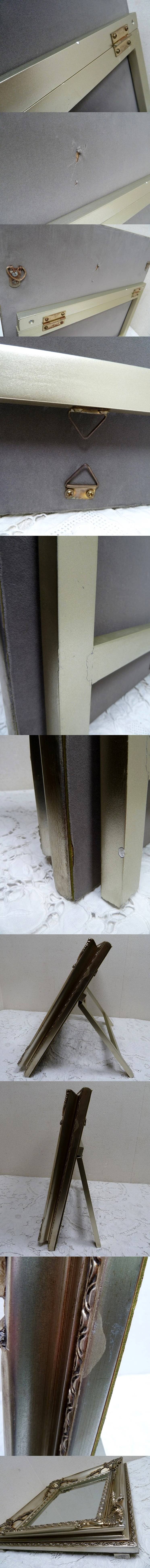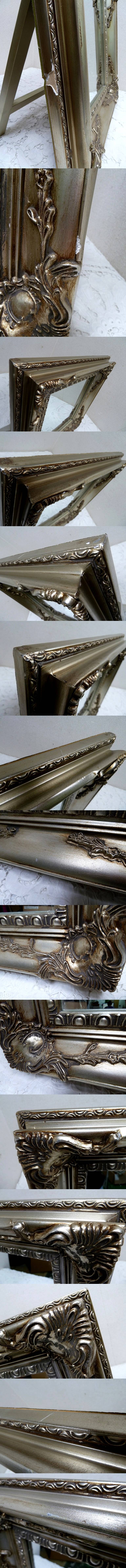 > (☆BM)ヴィクトリアンレトロ 置き型 ミラー 54.3×49.3㎝ マットシルバー ロココ調 鏡 アンティーク調 額装型 エレガント