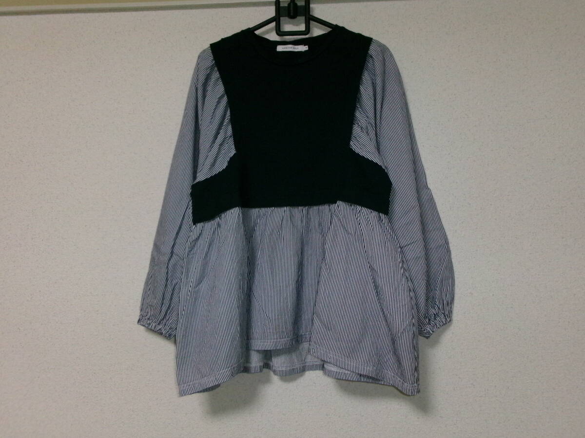 > AMERICAN HOLICアメリカンホリック☆青ブルー/白ストライプ柄×ネイビー紺切替☆ふんわり♪バルーン袖のブラウス風長袖カットソー☆Mサイズ