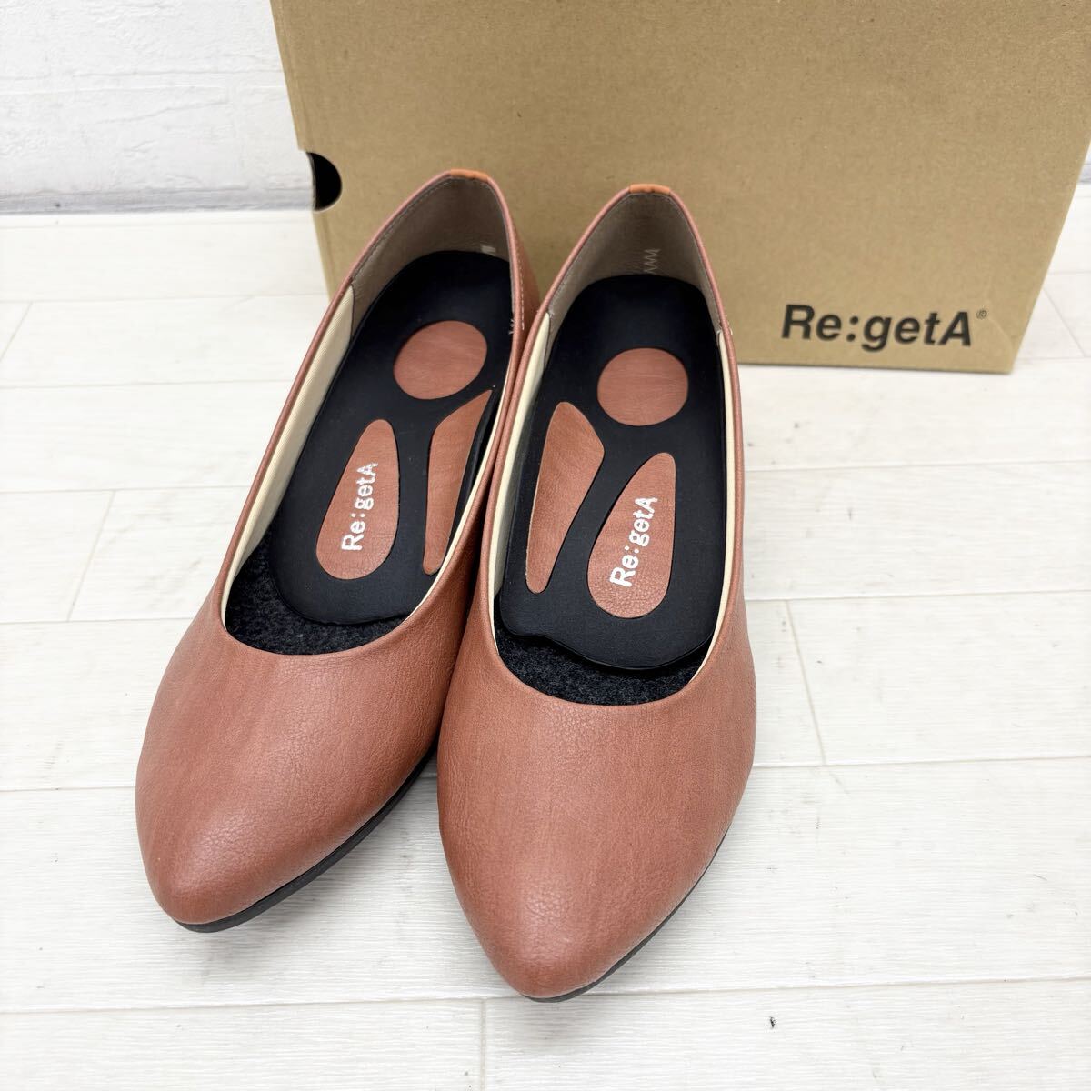 > 1809〓 箱付き Re:getA リゲッタ パンプス レディース サイズ24 ブラウン 単色 無地 靴 シューズ カジュアル ビジネス
