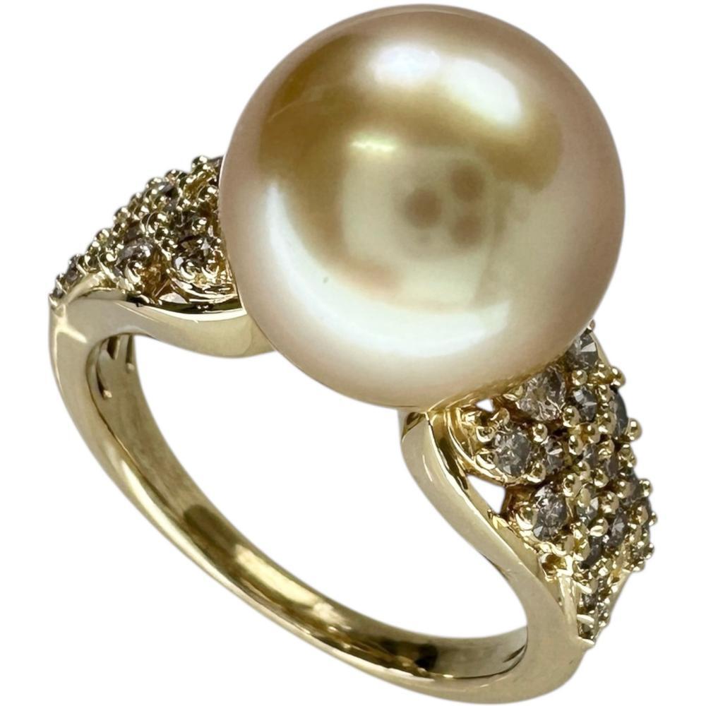 > 12号 白蝶ゴールデンパール10.6mm ダイヤモンド 0.38ct リング・指輪 K18ゴールド 6.4g レディース