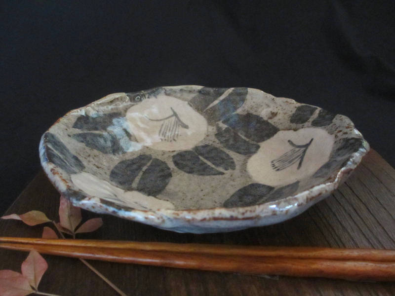 - 鉢 鼠志野 椿絵 六寸 丸鉢 陶芸作家・佐藤和次作 S-723