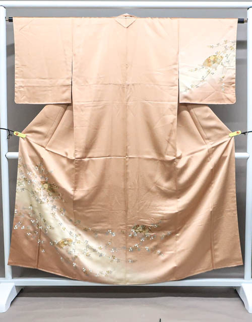 - 《京都一輝堂》【着物】 訪問着 扇子に萩文 身丈約155cm 裄丈約62.5cm 24z-4481