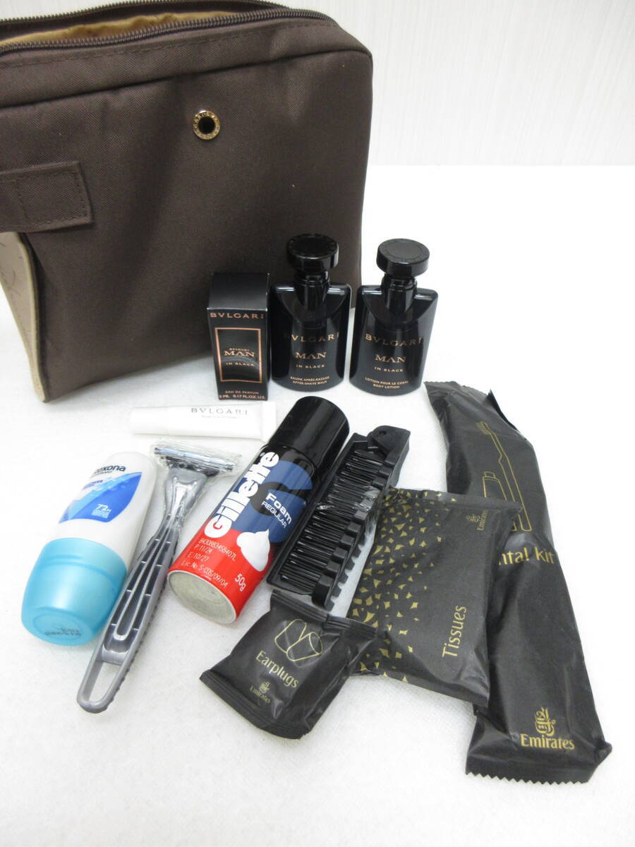 - 未使用 エミレーツ航空 ビジネスクラス アメニティ キット ポーチ 男性用 ブラウン ハンドヘルド型