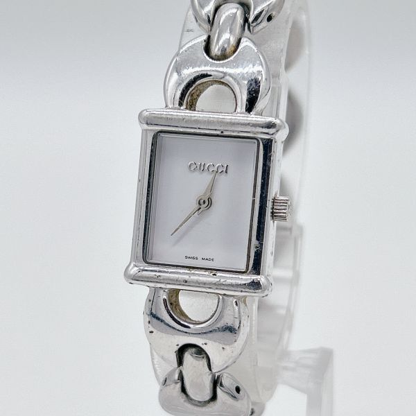 - 【1円スタート】稼働品 GUCCI グッチ 1800L シルバー 白文字盤 スクエア クオーツ レディース腕時計 ジャンク品
