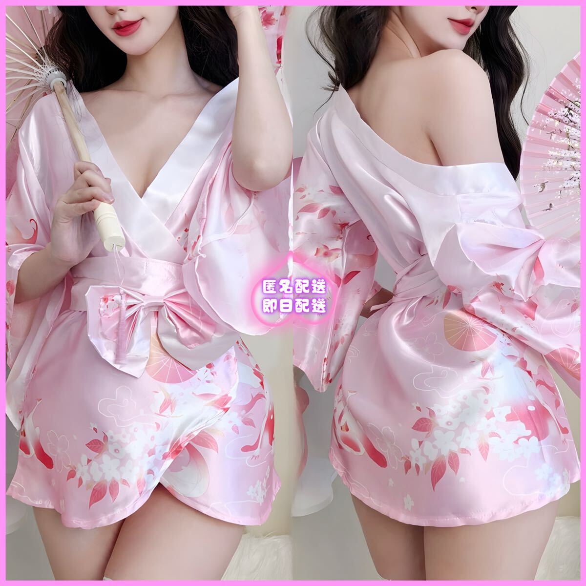- NA453 セクシーランジェリ ミニ浴衣 コスプレ 花魁 誘惑 和風 過激 着物風 衣装 ピンク