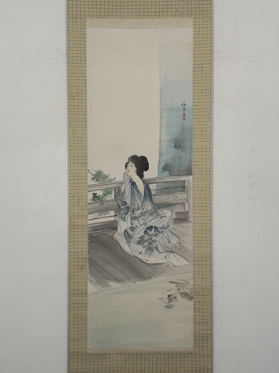 - 【真作 『大正ロマン昭和モダン展』出陳並図録添付】掛軸「伊藤晴雨 浴後美人図」共箱 野沢提雨師事 東京浅草生 美人画 絵画