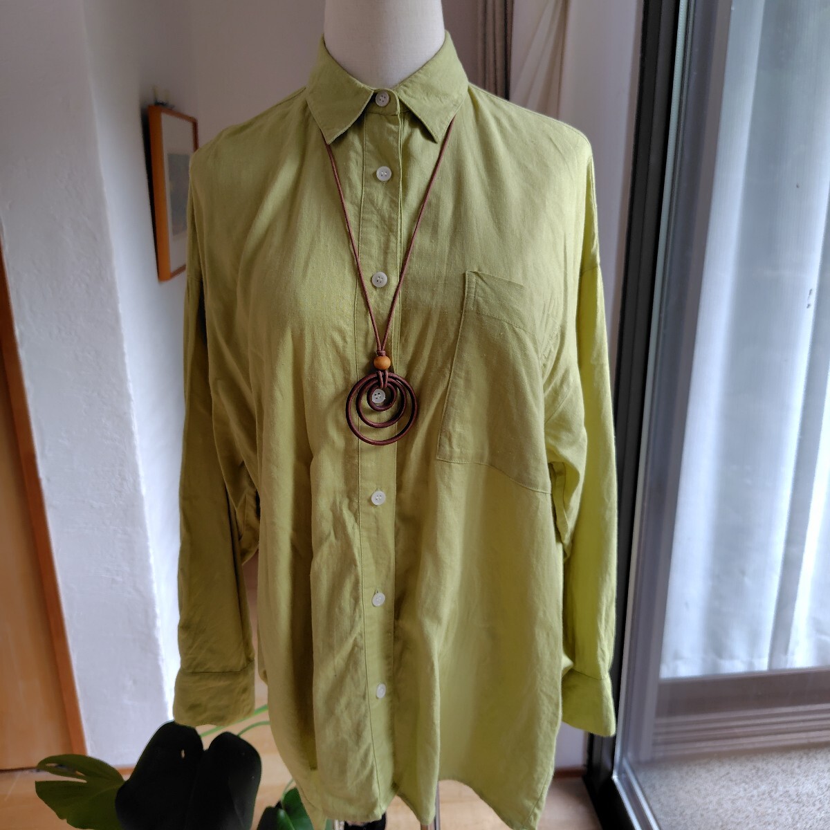> ELVENCE DEUX 綺麗色 リネン シャツカラー 長袖ブラウス ゆったり デザイン ドロップショルダー 長め丈 38 ハオリ