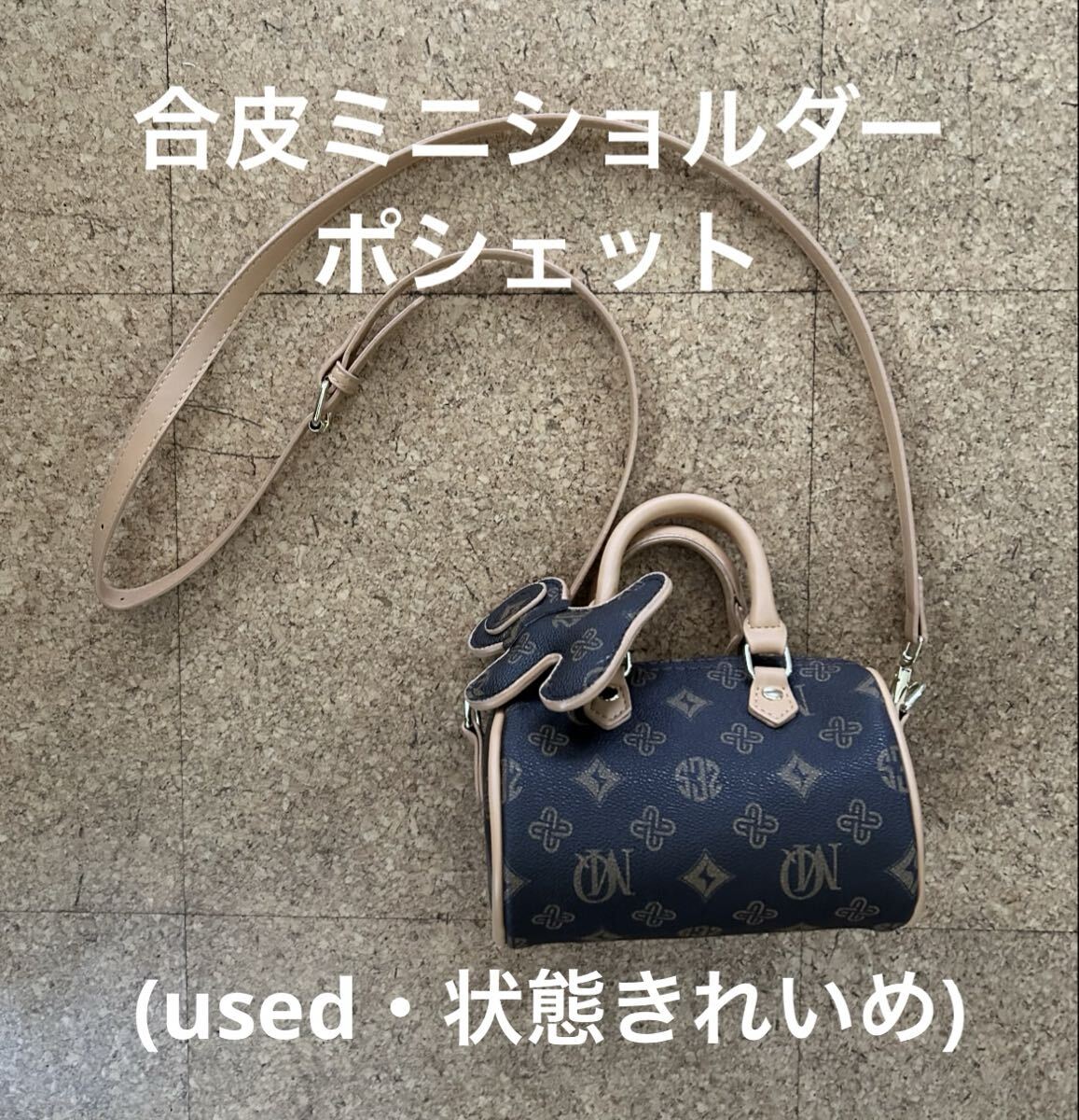 - 合皮ミニショルダーバッグ ミニバッグ ポシェット ロゴデザイン(used、状態きれいめ)縦約13×横約16×底約8.5㎝、ダークブラウン