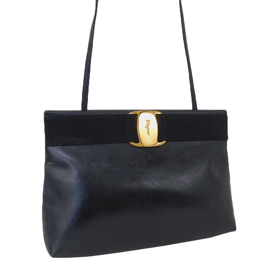 - 1円■サルヴァトーレフェラガモ ショルダーバッグ ヴァラ ブラック系 レザー Salvatore Ferragamo ■E.Bgm.pD-01