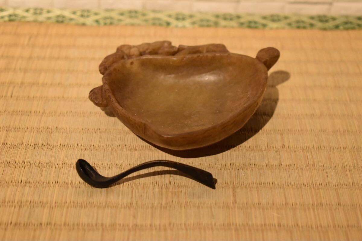 - 【GE】M566【コレクター所蔵品】時代 古砡筆洗 匙付/中国古玩 中国美術 水盂 石彫 書道具 文房具 骨董品 時代品 美術品 古美術品 hb