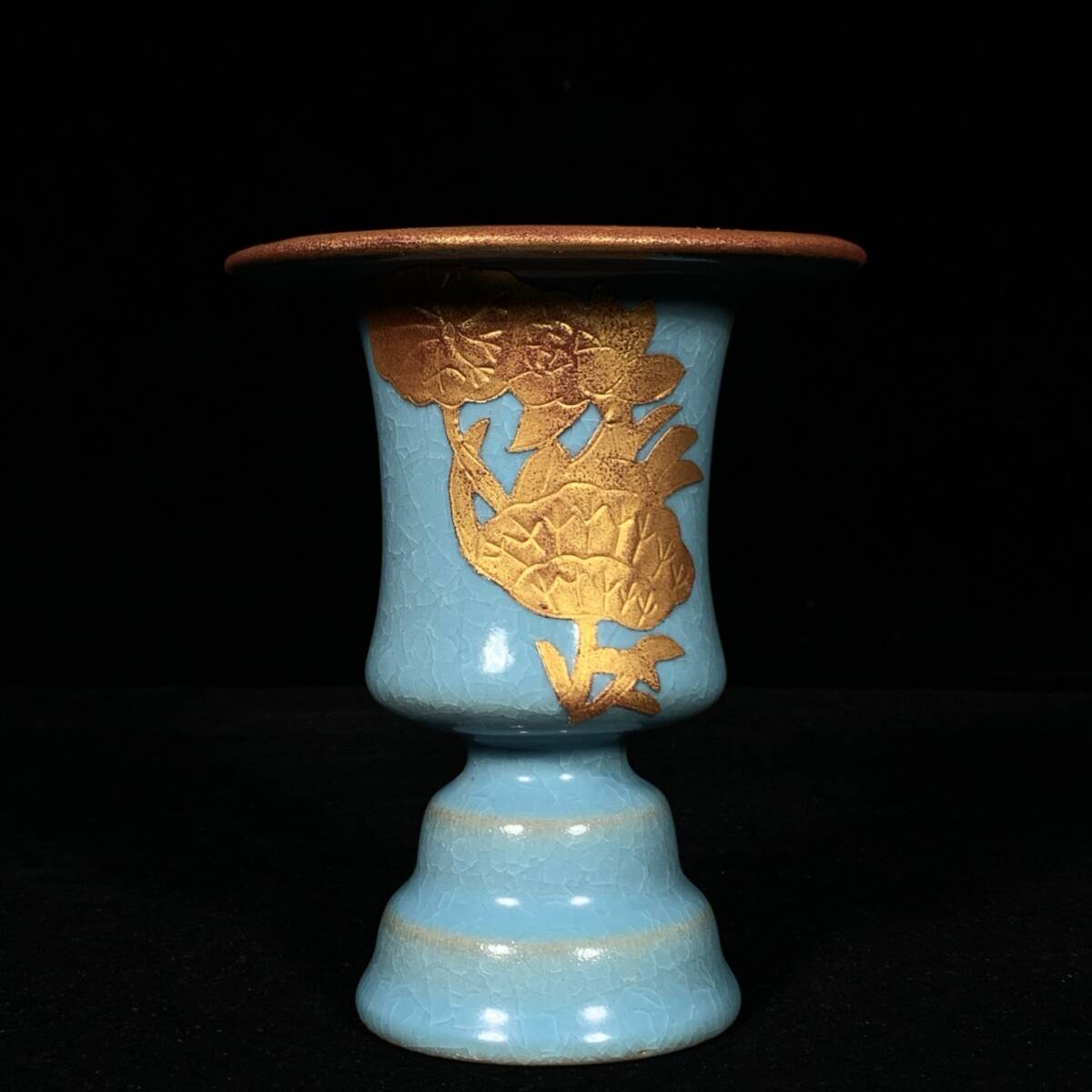 > 【仁】『宋・古陶瓷品・汝窯・包口・塗金・冰裂紋・花行炉・陶藝』極細工 古董品 中国古玩 古美術 古美味 時代物 旧家蔵出