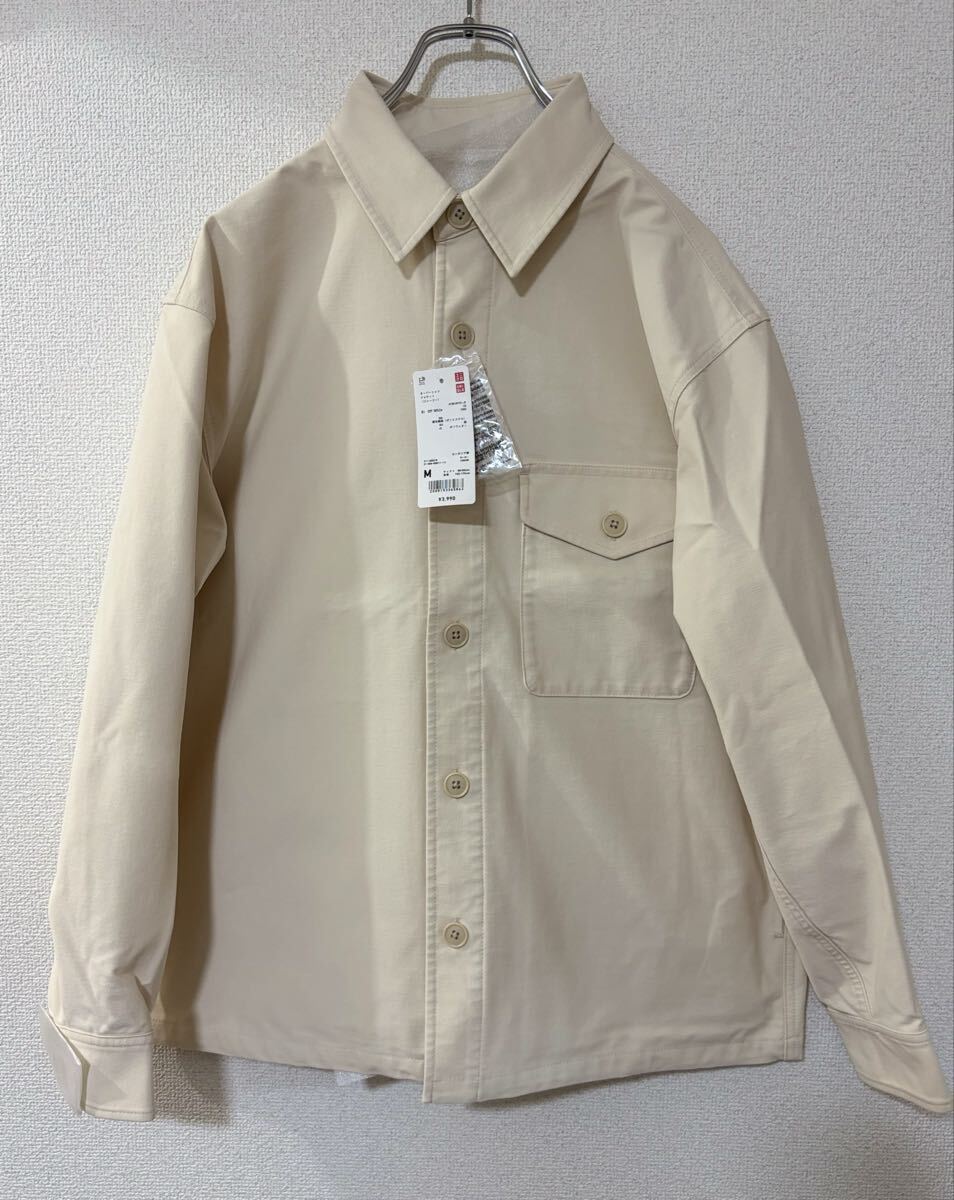 - UNIQLO ユニクロ オーバーシャツ ジャケット ジャージー オフホワイト M ユニセックス 無地 サイドポケット ワークジャケット 1012