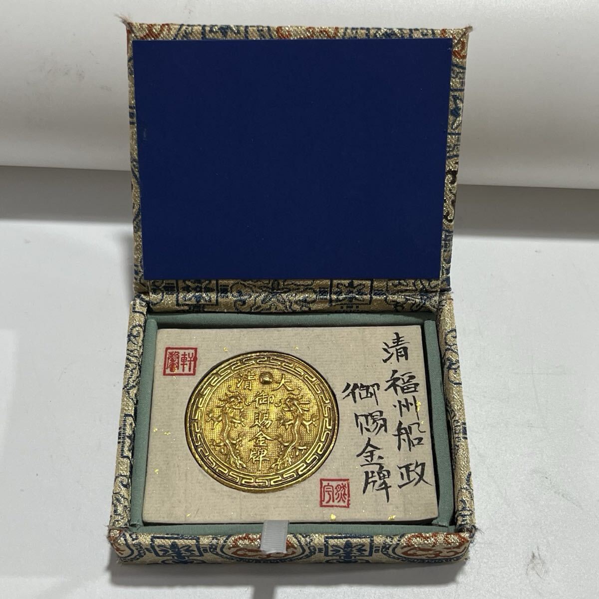 - 中国大清 清朝 福州船政成功 御金牌 レリーフ双龍彫刻 古銭 コイン 骨董品 収蔵品 大型金貨 金貨 コレクション 中国 収蔵用箱付き 鑑定済み