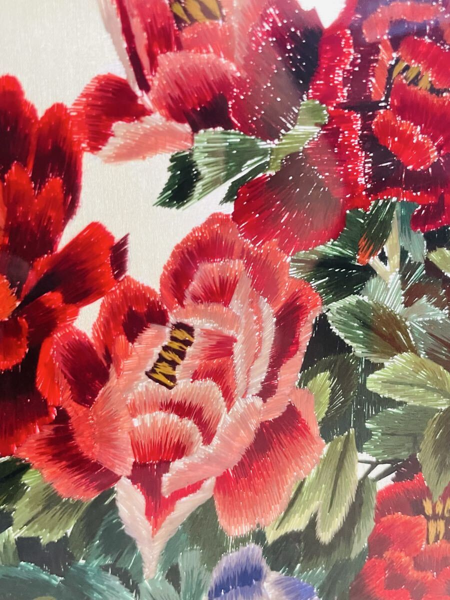 - レア 中国 刺繍 両面ガラス細工 唐木 骨董品 装飾品 花蝶画