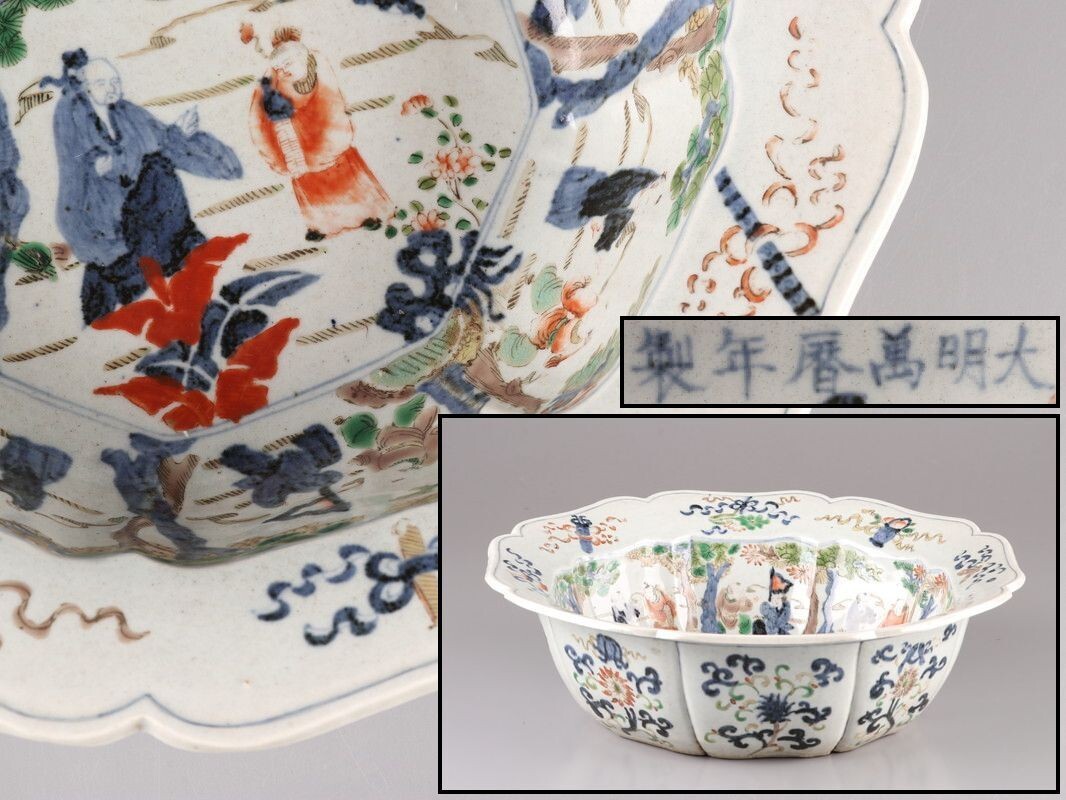 - 中国古玩 唐物 明代 大明萬暦年製 款 赤絵 五彩 特大 鉢 時代物 極上品 初だし品 D4629